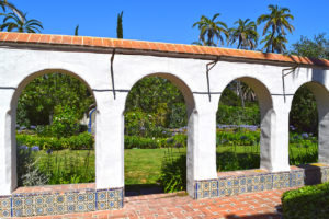 The South Lawn extends the north-south axis of the home’s design and once boasted unobstructed ocean views. The notable water features include a star-shaped fountain in the middle of the main lawn and the Peacock Pool with its narrow runnel channel inset into a stairway between lawn terraces, both with stunning tile work. Curving, tiered hedges of eugenia and jasmine lead the way further along the axis which continues past the Pepper Tree Fountain to the Cactus Garden Overlook, known for its three looming Dragon Trees and view into the naturalistic recesses of the property.